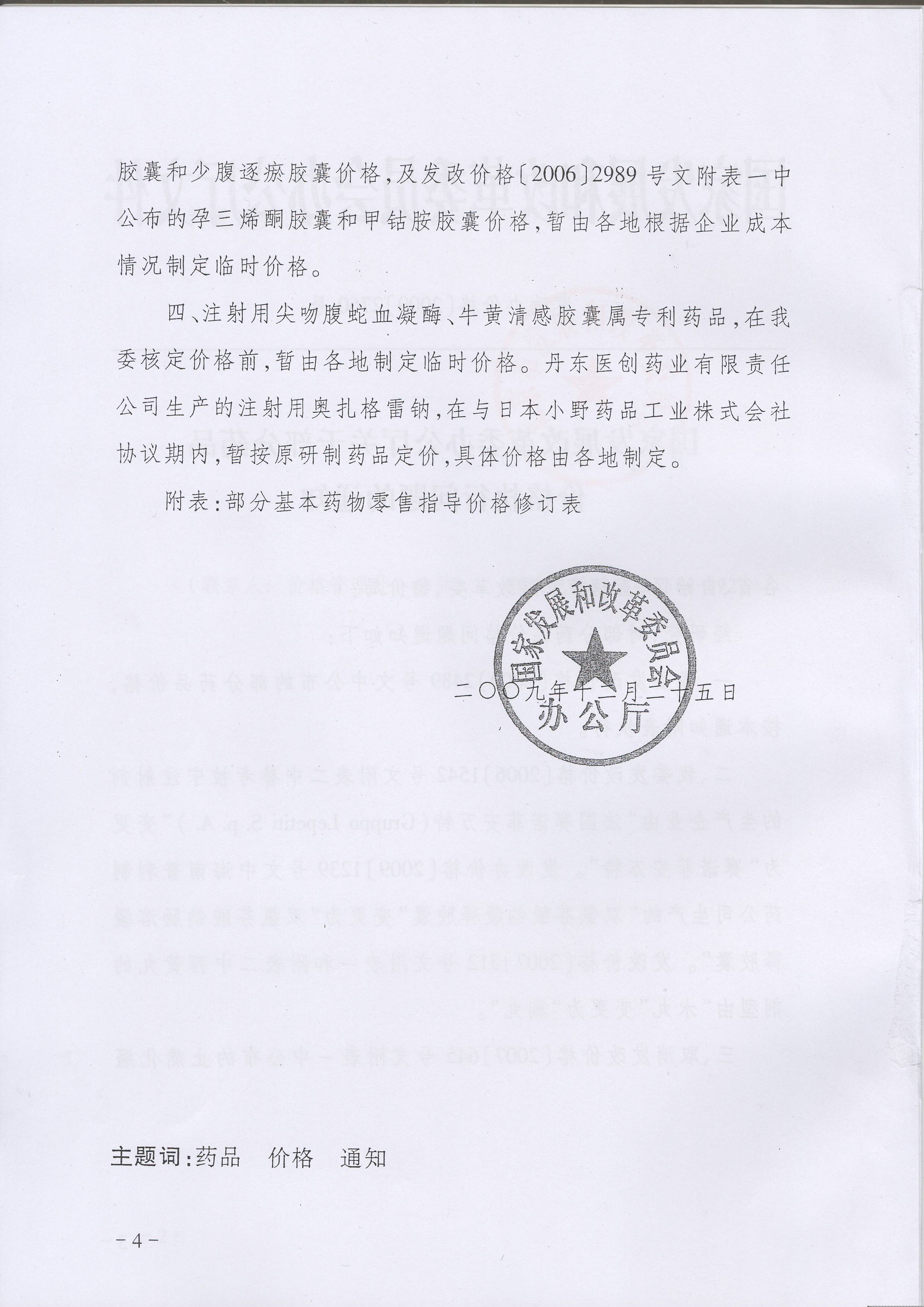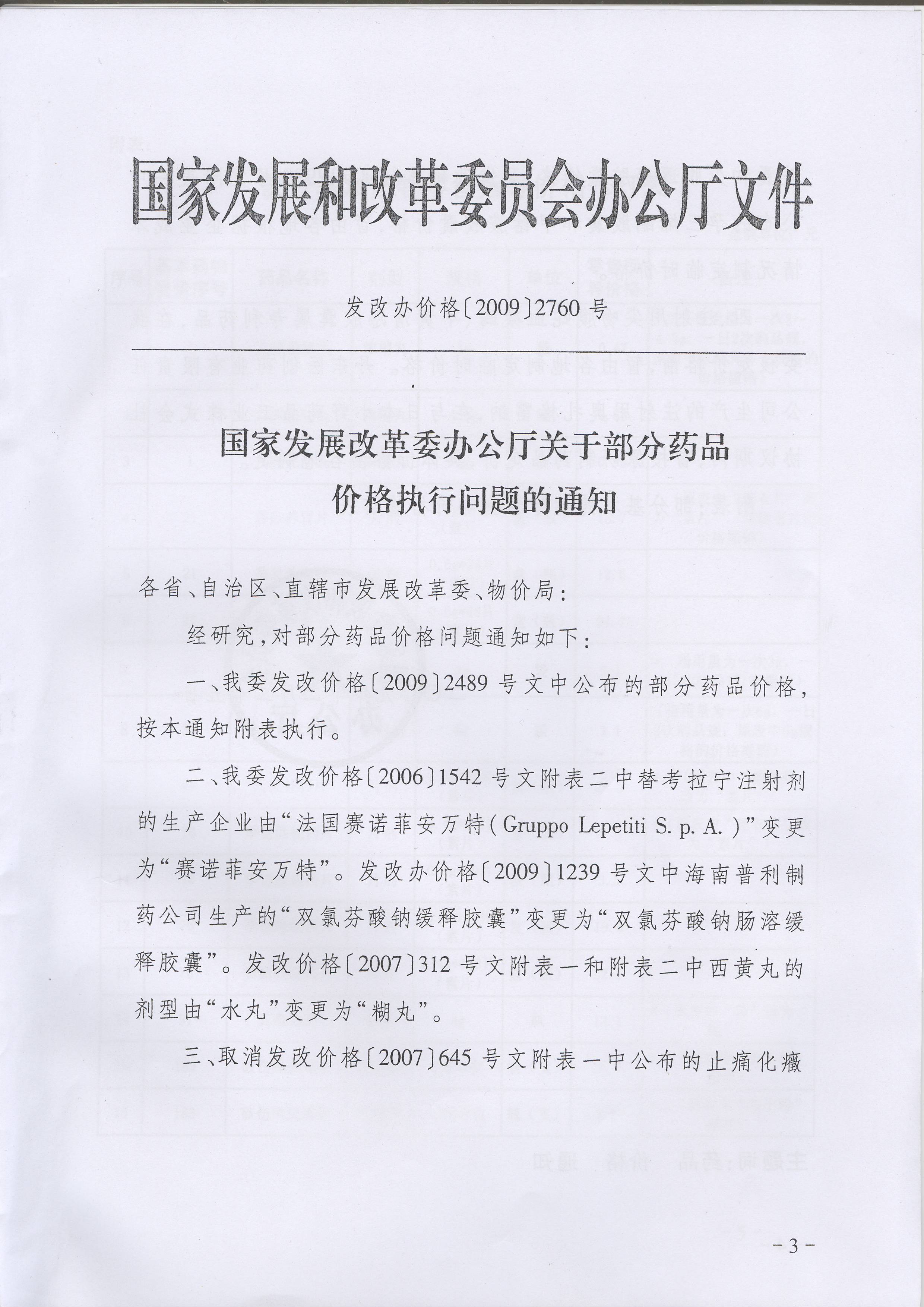 现将国家发展改革委办公厅《关于部分药品价格执行问题的通知》(发改办价格[2009]2760号)转发给你们,请遵照执行。
