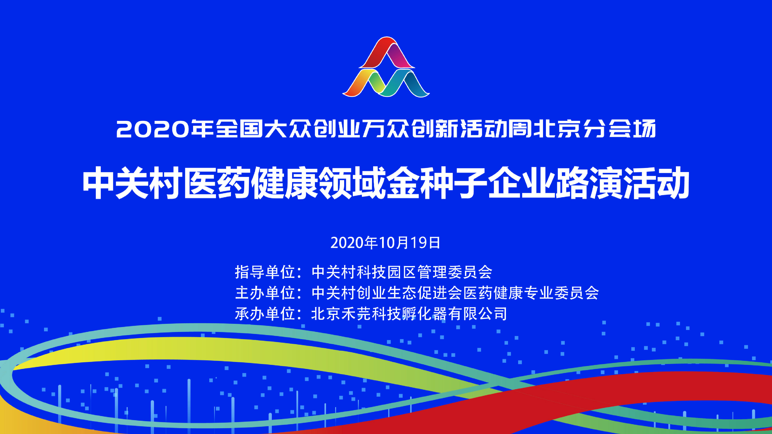 中关村创业服务“+”活动--“中关村医药健康领域金种子企业路演活动”由中关村科技园区管理委员会指导,中关村创业生态发展促进会医药健康专业委员会主办,北京禾芫科技孵化器有限公司承办。