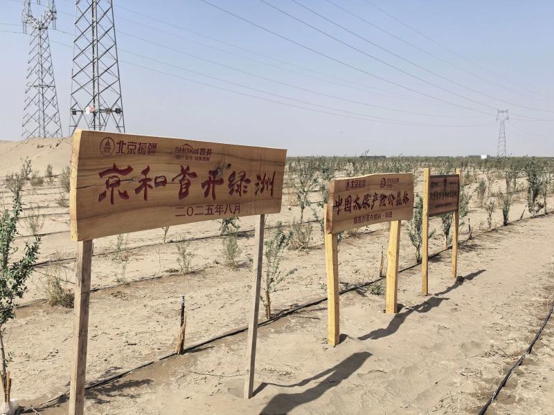 “治沙不仅要靠政府,更需要发挥群众的力量,群众在治沙的同时,也能增加自身的收入。”郭泰星说,2025年7月,北京市援疆和田指挥部会同和田地区行政公署分别同中国光华科技基金会、北京绿化基金会签订合作协议。第一期工程就是位于和田县塔克拉玛干沙漠南缘的一万亩群众治沙林地。