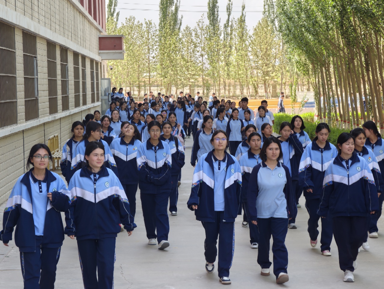 和田洛浦县第一中学的同学们穿上了融合中华传统文化与和田地域特色的国风校服。该校服由北京市援疆和田指挥部支持,家庭困难儿童享全额补贴,其他学生补贴50%。