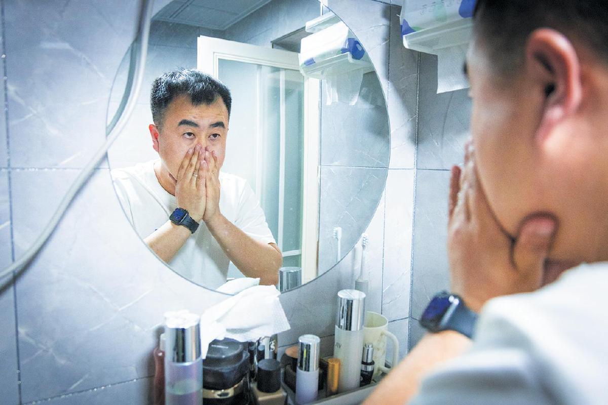 3月20日清晨,张家口,李橙子起床后进行洗漱。