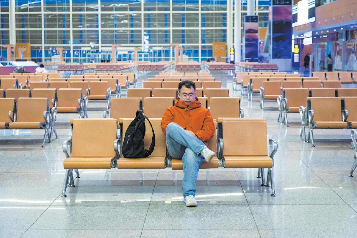 3月20日清晨,张家口站候车大厅,趁着候车间隙,李橙子闭目小憩。